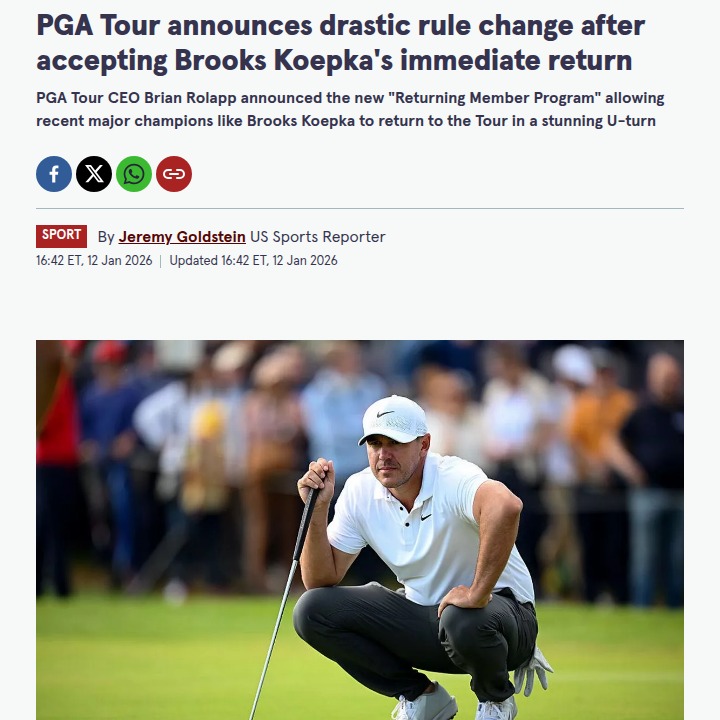 sarahgibson+FollowKoepka’s Comeback: PGA Tour’s Big GambleBrooks “Major Machine” Koepka is officially back on the PGA Tour, but not without a hefty price. After his LIV Golf stint, Koepka faces big restrictions—no sponsor invites to signature events, no FedEx Cup bonus, and a $5 million fine. The Tour’s new Returning Member Program only covers a select few, and the financial penalty is massive. Will this move reignite rivalries and bring more drama to the Tour? Let’s hear your takes! #Sports #Golf #BrooksKoepka00Share