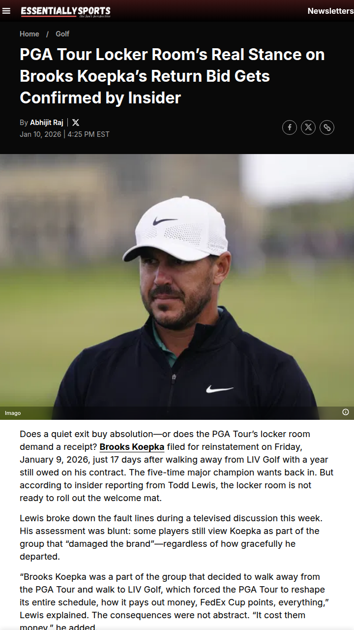 Michael Singh+FollowKoepka Eyes PGA Comeback: LIV Stars' Tight WindowBig news for golf fans: Brooks “Big Game” Koepka and a select few LIV Golf defectors have a short window to rejoin the PGA Tour. The new Returning Member Program lets major winners like Koepka, Rahm, Bryson, and Cam Smith apply by Feb 2—but only if they’re willing to pay steep penalties and meet strict criteria. Koepka’s already making moves, but this one-time shot means the rivalry between LIV and PGA just got even spicier. Thoughts on King Koepka’s return? #Sports #Golf #BrooksKoepka00Share