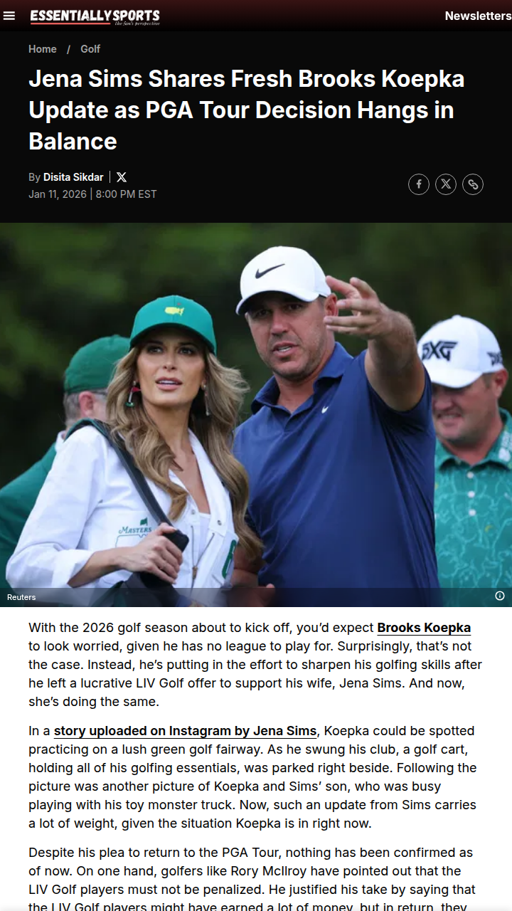 Heather Garcia+FollowBrooks 'The Machine' Eyes PGA ComebackGolf fans, what do you make of Brooks 'The Machine' Koepka's surprise move to leave LIV and apply for PGA Tour reinstatement? The real drama is off the course—while Koepka stays silent, his wife Jena Sims is keeping things light on social, shifting the spotlight to their son Crew’s curls. Meanwhile, Rory McIlroy wants LIV stars back, but Smylie Kaufman says rules are rules. Should the PGA make an exception for Koepka, or is a one-year ban fair? #Sports #Golf #BrooksKoepka10Share