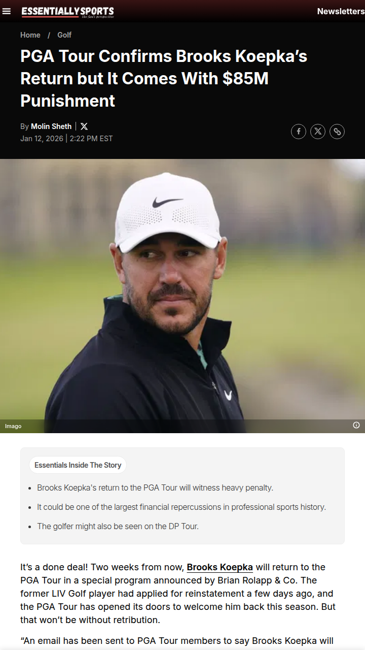 Michael Singh+FollowBrooks Koepka’s Bold PGA Tour ComebackHuge news, golf fans—Smash GC’s own Brooks Koepka is officially returning to the PGA Tour under the new Returning Member Program! After his LIV Golf stint, Koepka’s comeback is stirring up controversy, especially with the hefty penalties he’s taking on (forfeiting up to $85 million in equity!). The rivalry between LIV and PGA is heating up, and it’ll be wild to see how “BK” is received at Torrey Pines. Do you think this move strengthens the Tour, or is it unfair to the loyal PGA guys? #Sports #Golf #BrooksKoepka00Share