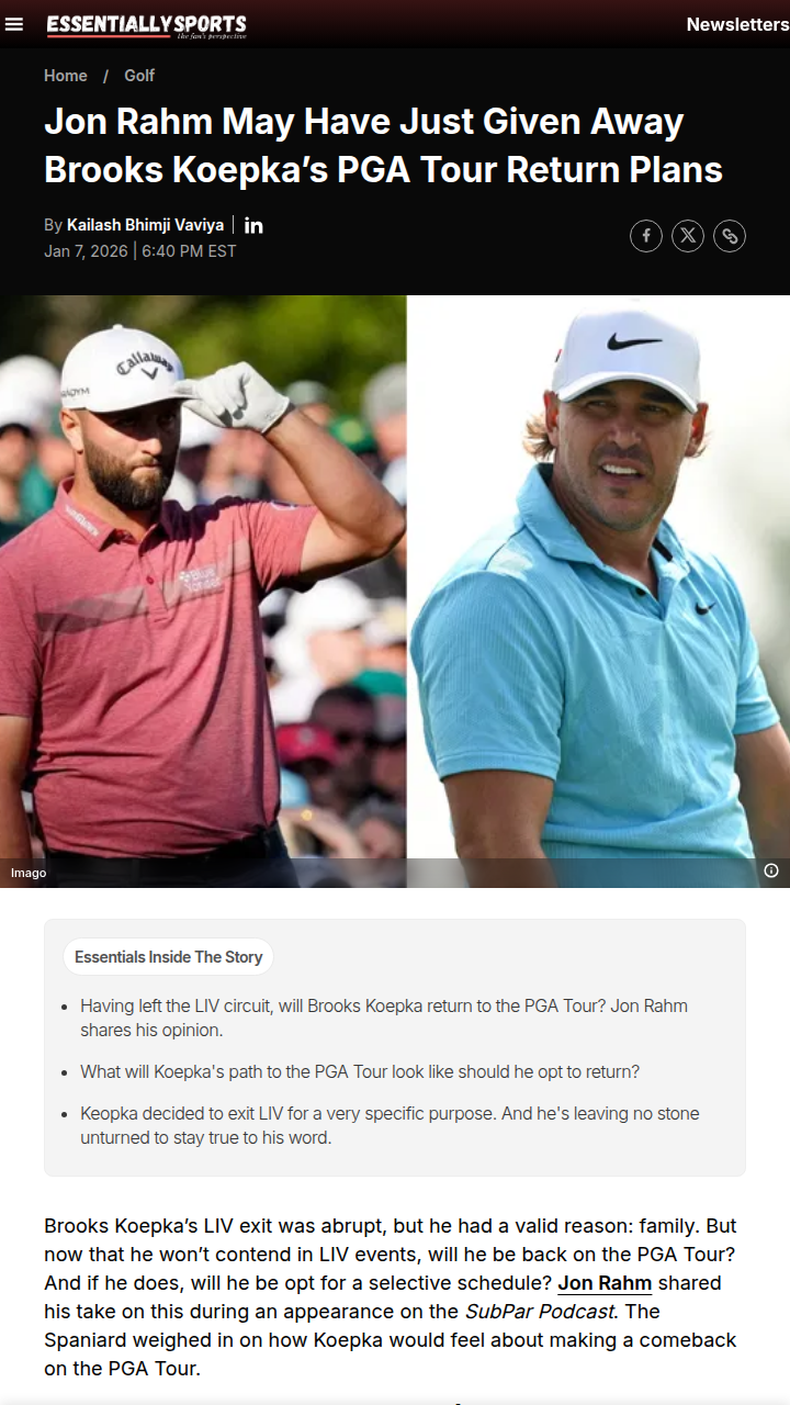 rmendoza+FollowKoepka’s Comeback? Rahm Drops a HintLooks like the Koepka drama isn’t over yet! After his sudden LIV Golf exit for family reasons, fans are buzzing about whether “Brooksy” will tee it up on the PGA Tour again. Jon Rahm just weighed in, suggesting Koepka could return with a selective schedule, maybe via sponsor invites. But with a ban until August 2026, the path back isn’t easy. Would you want to see the 5x major champ back battling the best? #Sports #Golf #BrooksKoepka00Share