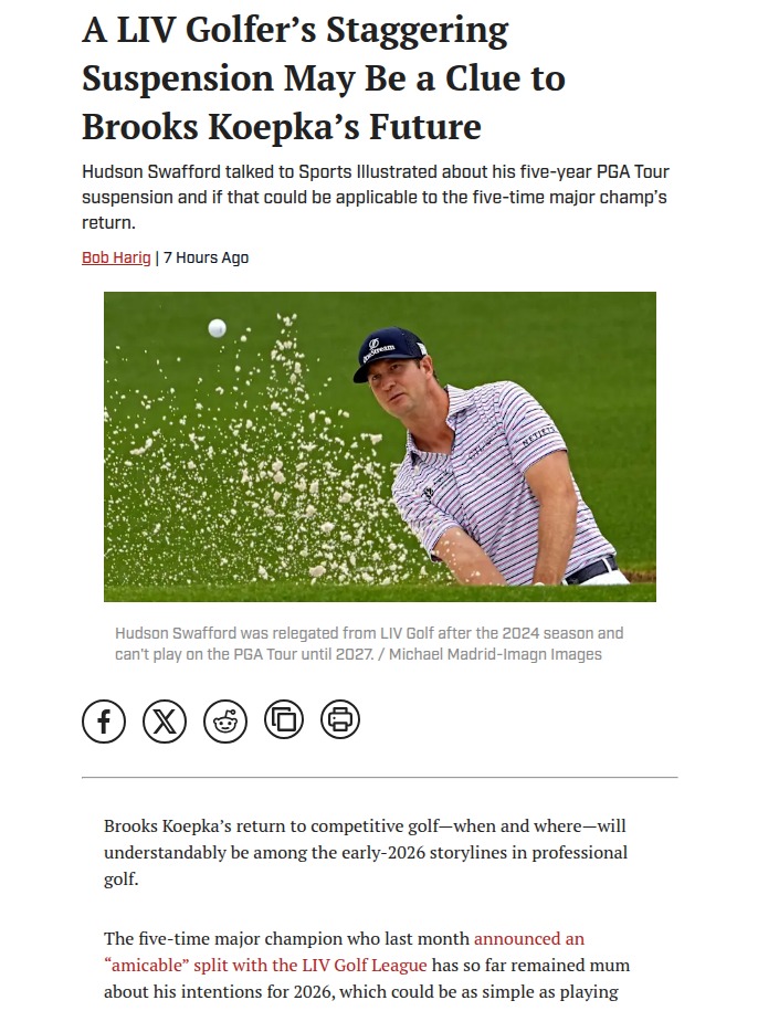 Krystal Lopez+FollowKoepka’s Next Move: PGA Tour or DP World?Insiders are buzzing about Brooks “Big Game” Koepka’s future after his split from LIV Golf. The main drama? Hudson Swafford’s massive suspension for playing LIV events may hint at what’s ahead for Koepka. While rumors swirl about a one-year ban, it’s not so clear-cut—especially for former PGA Tour stars like Koepka. Will he return to the PGA Tour, or take his talents elsewhere? This saga is far from over, and fans are watching every move. #Sports #Golf #BrooksKoepka00Share