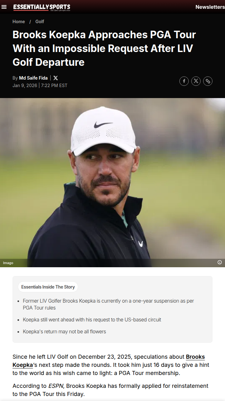 Krystal Lopez+FollowKoepka’s LIV Exit: No Shortcut Back to PGATough break for Brooks “Major Machine” Koepka fans—his LIV Golf exit doesn’t mean he’s teeing it up at PGA Tour events anytime soon. Despite his five majors, the one-year suspension rule kicks in from his last LIV event, not his announcement. The precedent is clear: even a star like Koepka has to wait his turn, just like Laurie Canter and others before him. No special treatment, no shortcuts—rules are rules, even for a five-time champ. #Sports #Golf #BrooksKoepka00Share