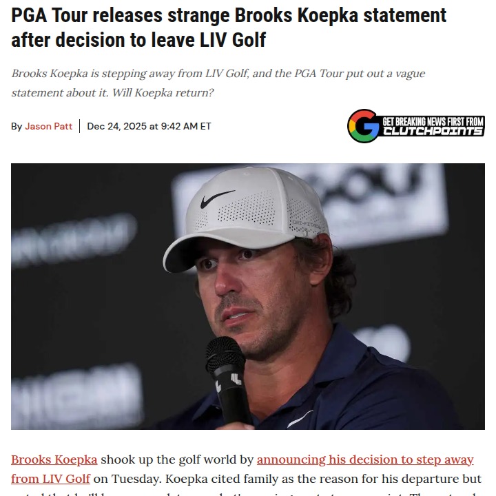 Karen Pierce+FollowKoepka’s PGA Tour Return? Strange Statement Fuels SpeculationSmash Bros fans, what do you make of Brooks Koepka’s latest move? After stepping away from LIV Golf, Koepka cited family reasons, but the PGA Tour’s odd, vague statement has everyone buzzing. Is the five-time major champ eyeing a comeback to the Tour, or is there more drama brewing behind the scenes? With his LIV suspension in play, it’s a waiting game. Thoughts on the Tour’s response and what’s next for Koepka? #Sports #Golf #BrooksKoepka10Share