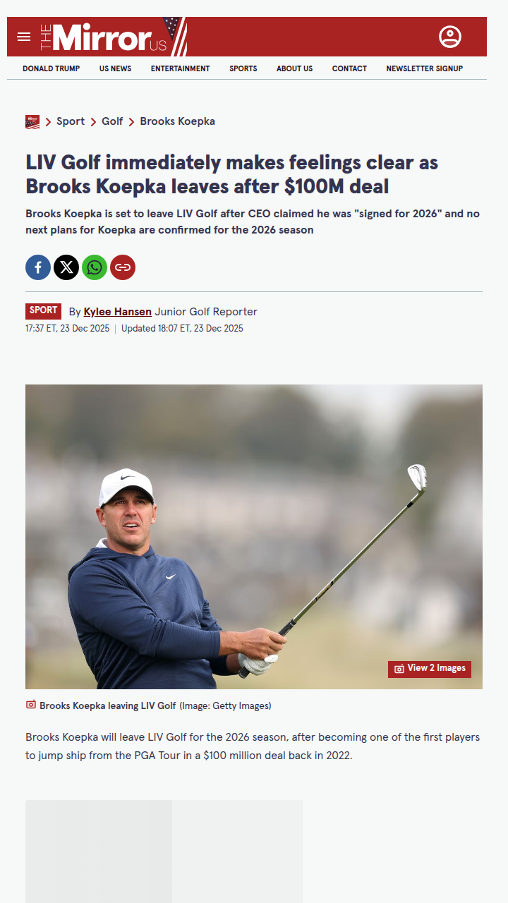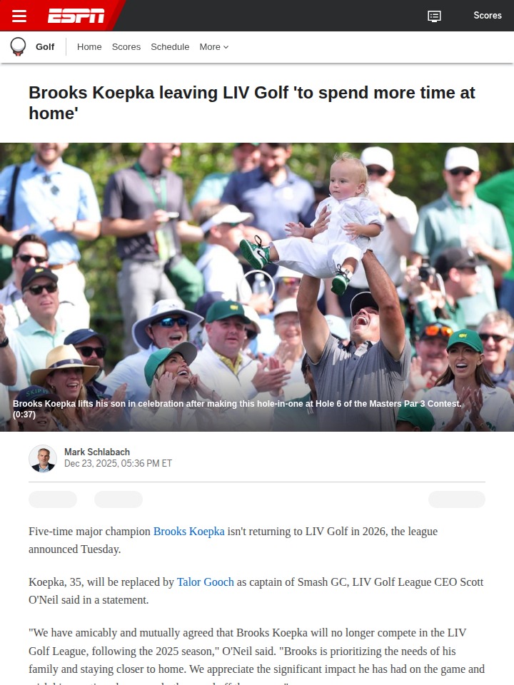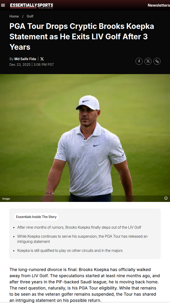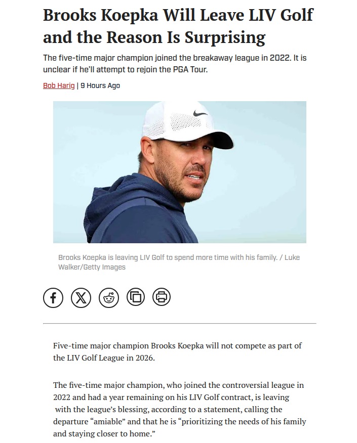 rmendoza+FollowKoepka Calls It: LIV Era Ends for Smash CaptainBig news in the golf world—Brooks “BK” Koepka is stepping away from LIV Golf after 2025, closing the book on a $100M move that shook up the PGA-LIV rivalry. After a tough run with no major wins since his 2023 PGA Championship, King Koepka’s exit leaves Smash GC looking for a new leader. Will he try to rejoin the PGA Tour, or is this the end of his headline-grabbing moves? #Sports #Golf #BrooksKoepka20Share