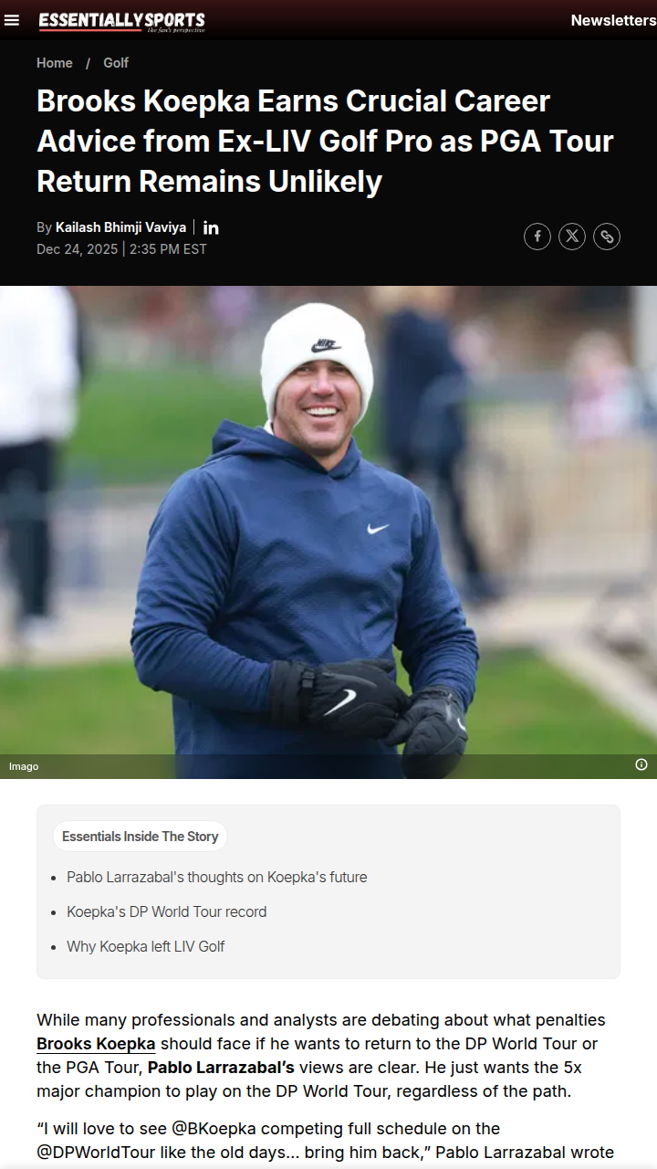 Karen Pierce+FollowKoepka’s Next Move: Will He Return to the DP Tour?Big news in the golf world—Brooks “BK” Koepka is officially out of LIV Golf for 2026, with family time as his main reason. But the real debate is heating up: Will Koepka try to make a comeback on the DP World Tour, or even the PGA Tour? Pablo Larrazabal, a respected ex-LIV pro, is openly rooting for Koepka’s DP return, but with bans and fines looming, nothing’s certain. What do you think—should BK take the Race to Dubai route? #Sports #Golf #BrooksKoepka00Share