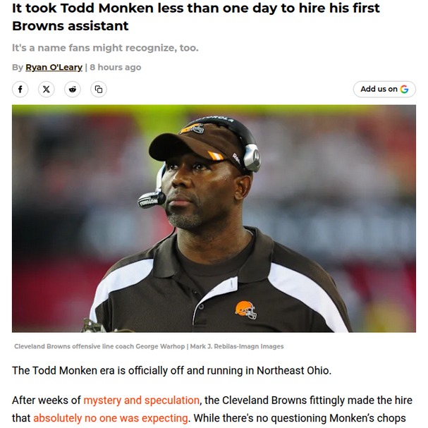 phughes+FollowTodd Monken shakes up Browns coaching staffTodd Monken wasted no time making his mark as the new Browns head coach, reuniting with George Warhop to lead Cleveland’s offensive line. Warhop, who coached the Browns’ O-line from 2009-13, returns after a stint with Monken in Baltimore. This move signals Monken’s intent to build a staff of seasoned NFL veterans, but there’s already drama brewing—defensive coordinator Jim Schwartz is reportedly unhappy about being passed over. With special teams coordinator Bubba Ventrone also drawing outside interest, the Browns’ coaching staff could look very different soon. What do you think of Monken’s fast start and the shakeup in Cleveland? #Sports #Football #Browns30Share