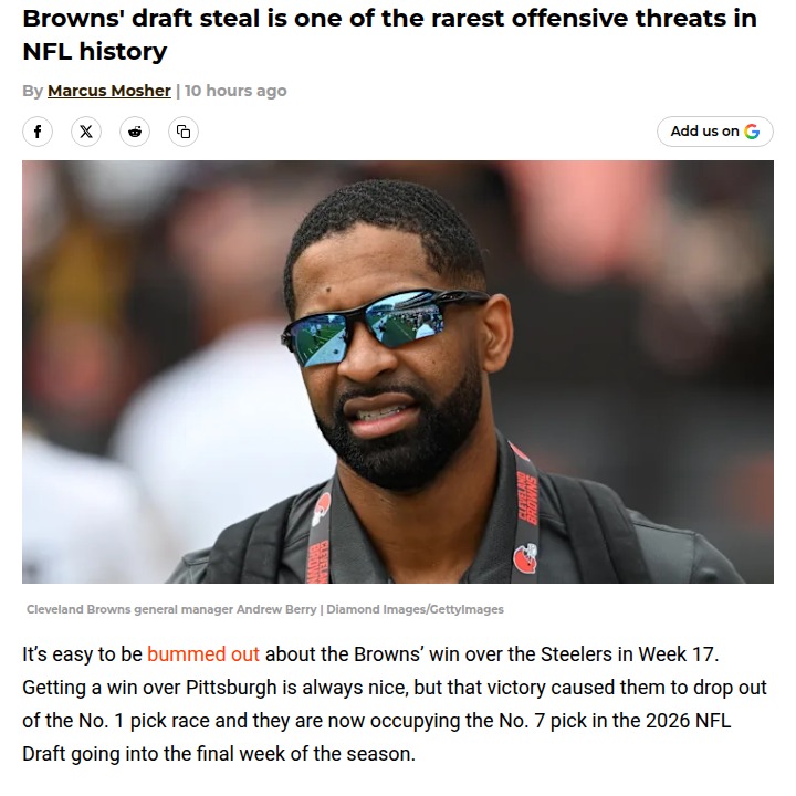 Jeffrey Armstrong+FollowBrowns fans: This draft pick twist changes everythingThe Browns’ draft fate just got a wild shakeup—thanks to the Eagles resting their starters in Week 18. If Washington snags a win over Philly’s backups, Cleveland could lock in a top-6 draft pick, even if they win their last game. That means Browns fans don’t have to root for a loss to secure a great draft spot. With so much riding on both games, the drama is real. How do you feel about this unexpected turn? Would you rather see a win to end the season or a higher draft pick for the future? #Sports #Football #Browns01Share