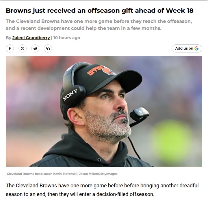 Amy Williams+FollowBrowns eye big changes after rough seasonCleveland Browns fans, it looks like the front office is seriously weighing a coaching shakeup after another tough year. Reports say the team has already started looking into potential replacements for Kevin Stefanski, even though he’s led the Browns to rare playoff wins and brought some hope back to the Dawg Pound. Still, after a string of disappointing seasons, patience is running thin. Would a new head coach finally spark the turnaround Cleveland craves, or does Stefanski deserve one more shot? Let’s hear your take—what’s the right move for the Browns? #Sports #Football #Browns00Share