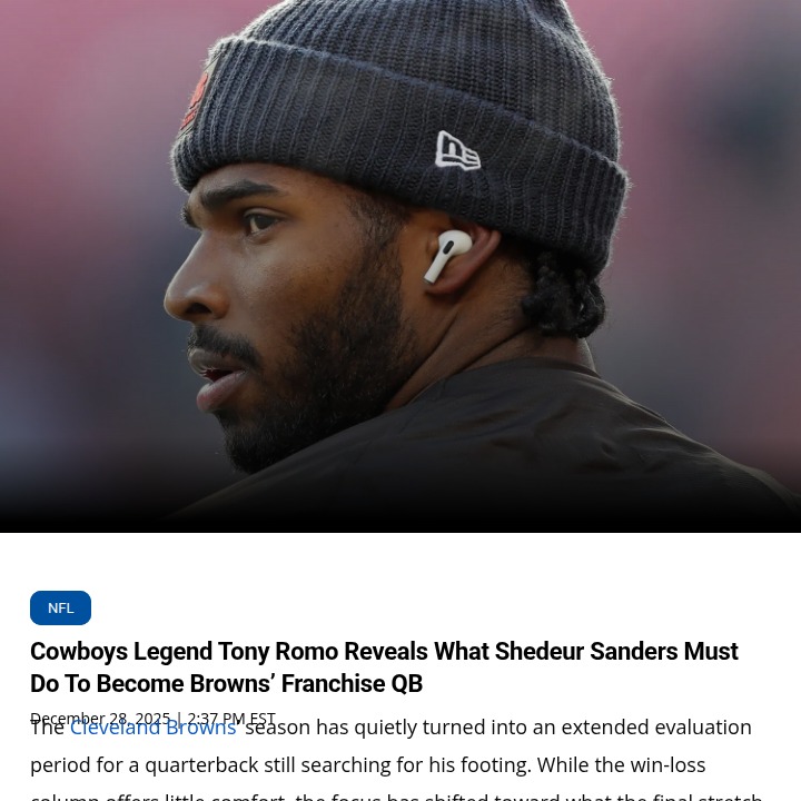 glen25+FollowCan Shedeur Sanders Be the Browns’ Answer?Tony Romo, the Cowboys’ own Iron Man, just weighed in on Shedeur Sanders’ shot at locking down the Browns’ QB job. Romo’s seeing real growth—Sanders is learning to manage games, not just survive. But Romo says these next two games are make-or-break. With the Browns facing off against Aaron Rodgers, Sanders has a golden chance to prove he’s more than a stopgap. Do you think he’s got what it takes to be Cleveland’s franchise guy? #Sports #Football #Browns10Share