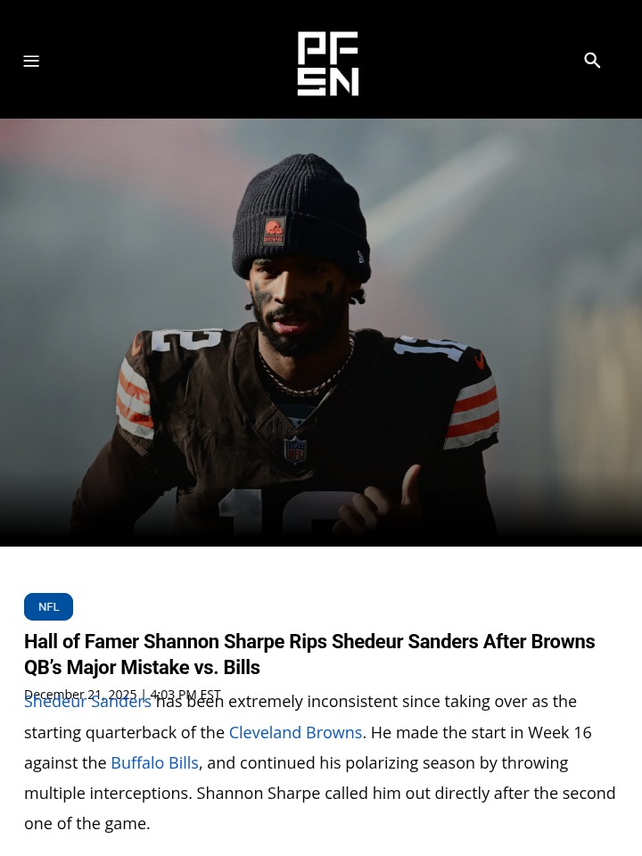 Christopher Hughes+FollowSharpe calls out Shedeur Sanders after Browns lossShannon Sharpe didn’t hold back after Shedeur Sanders threw two tipped-ball interceptions in the Browns’ tough game against the Bills. Even though both picks came off deflections, Sharpe called out the rookie QB for being too casual and not decisive enough with his throws. Sanders has shown flashes of promise, but his inconsistency is raising real questions about his future as Cleveland’s starter. Browns fans, what do you think: Is this just rookie growing pains, or are you worried about his long-term fit? Let’s hear your take on Sanders’ up-and-down season so far. #Sports #Football #Browns01Share