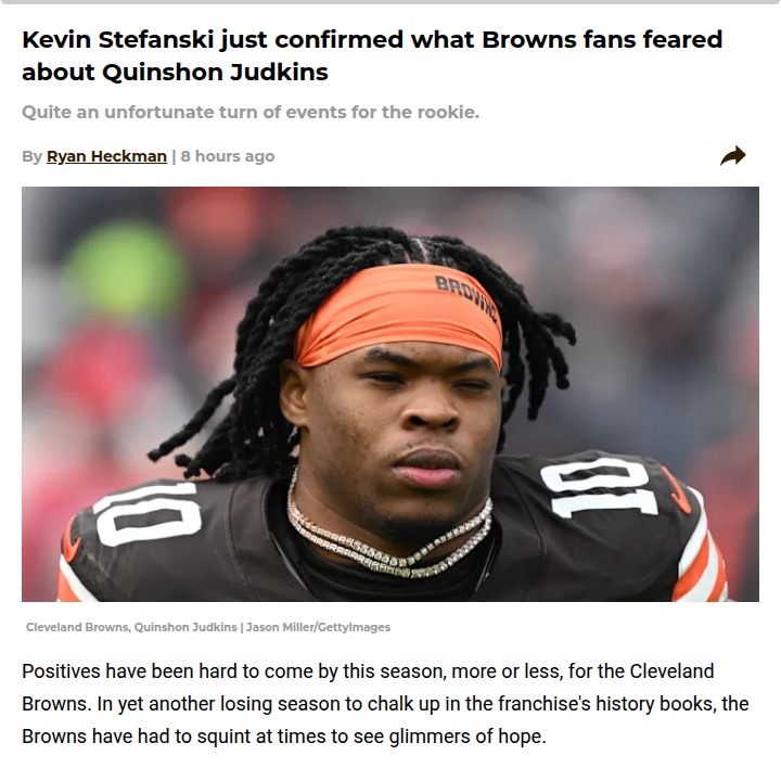 Aaron Taylor+FollowBrowns lose rising star Judkins to injuryQuinshon Judkins’ breakout rookie season just ended in heartbreak for Browns fans. After stepping up big time following Nick Chubb’s absence, Judkins was only two yards shy of 1,000 from scrimmage when a brutal ankle dislocation and fibula fracture took him out for the year. It’s a tough blow, especially with the Browns already fighting through a rough season. The good news? Judkins is expected to recover in time for offseason workouts. How do you feel about the Browns’ future with Judkins and the team’s resilience through all these setbacks? #Sports #Football #Browns00Share
