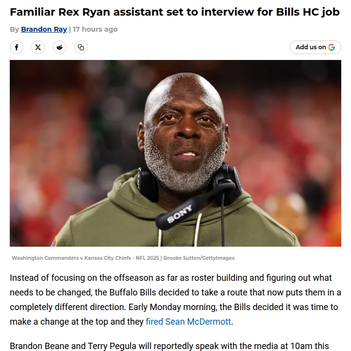 glen25+FollowBills shake things up: Anthony Lynn in the mixSean McDermott is out as Bills head coach, and the search for his replacement is already making waves. The team is bringing in Anthony Lynn—who once served as interim head coach after Rex Ryan’s exit—for an interview this weekend. Lynn’s journey since then has included a head coaching stint with the Chargers and roles with the Lions, 49ers, and Commanders. Alongside Lynn, Buffalo is also eyeing Joe Brady and Brian Daboll. With several teams already filling their vacancies, the pressure’s on the Bills to get this hire right. Who do you think should lead Buffalo next? #Sports #Football #BuffaloBills10Share