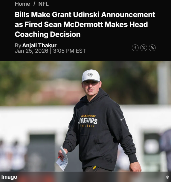 glen25+FollowBills eye Grant Udinski for head coachBuffalo’s coaching search just took an unexpected turn—Grant Udinski, the Jaguars’ offensive coordinator who helped nearly knock the Bills out of the playoffs, is now in the running for the top job. Udinski’s rise has been unconventional: he never played in the NFL, but he’s made a name for himself coaching at Baylor, the Panthers, Vikings, and most recently, Jacksonville. With Sean McDermott out, the Bills seem ready for a bold new direction. What do you think—should Buffalo go with a fresh face like Udinski, or stick with a more traditional pick? #Sports #Football #BuffaloBills00Share
