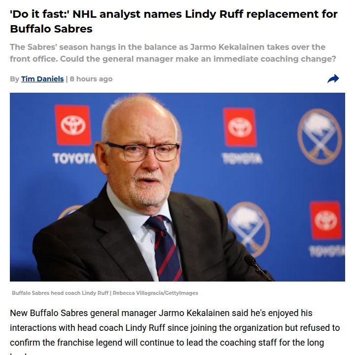 stacy28+FollowBuffalo Sabres could see a bold coaching shakeupBig changes might be brewing for the Buffalo Sabres as new GM Jarmo Kekalainen weighs whether to stick with beloved coach Lindy Ruff or make a bold move for veteran Peter DeBoer. DeBoer’s playoff pedigree and high-energy style could be exactly what the Sabres need to break their postseason drought and raise the team’s compete level. While Ruff’s legacy is secure in Buffalo, fans seem ready for a fresh start if it means finally turning things around. Would you support a coaching change, or do you think Ruff deserves more time? Let’s hear your take! #Sports #IceHockey #BuffaloSabres00Share