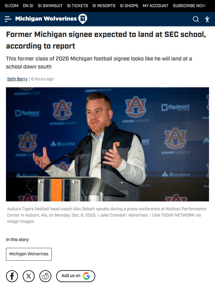 Amy Williams+FollowBear McWhorter Flips to Auburn?Looks like Michigan’s loss could be Auburn’s gain! After Coach Moore’s exit, Bear McWhorter—aka the Cartersville Crusher—was released from his Michigan LOI and is now heavily favored to join the Tigers. With Coach Golesh’s prior relationship and McWhorter’s Alabama roots, this SEC move feels almost inevitable. Wolverines fans, how big of a blow is this to the 2026 class? And Auburn fans, how hyped are you for this O-line addition? #Sports #Football #CFB00Share