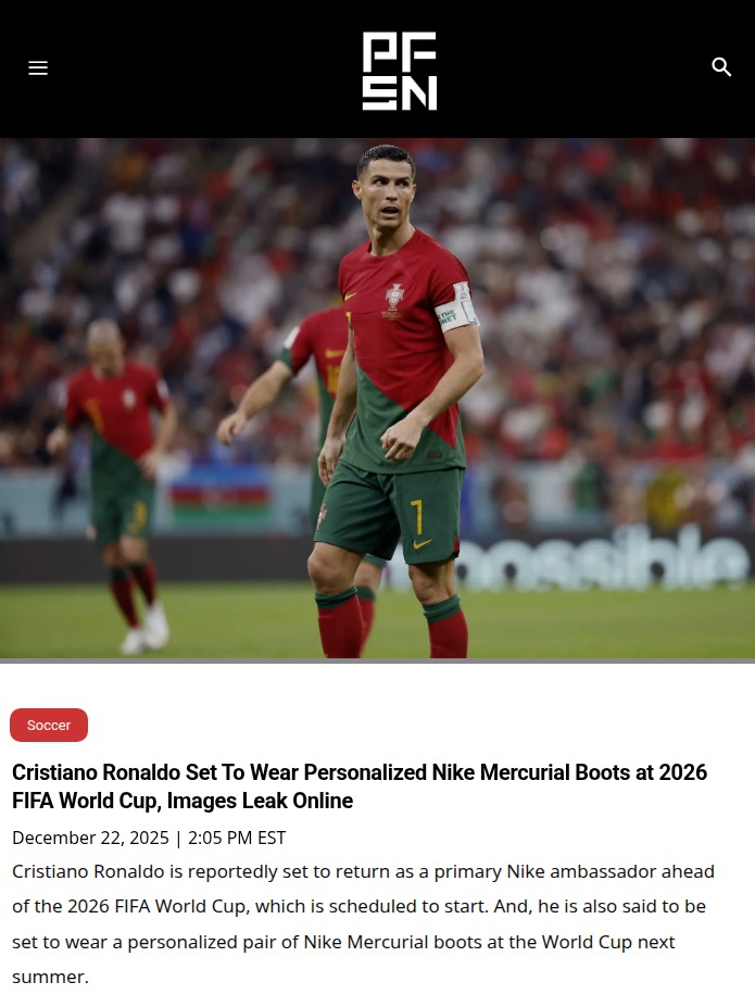 Maurice Miller+FollowCR7’s Golden Boots Leak Ahead of World CupBig news for Portugal fans: King Ronaldo is set to debut custom Nike Mercurial boots at the 2026 FIFA World Cup! The leaked images show a gold tribute to his iconic 2009 pair, marking his sixth World Cup run. At 41, can CR7 finally lead Portugal to glory? Also, United’s Kobbie Mainoo is being told to follow in Ronaldo’s legendary footsteps. Thoughts on these new boots and the pressure on Mainoo? #Sports #Soccer #CR700Share