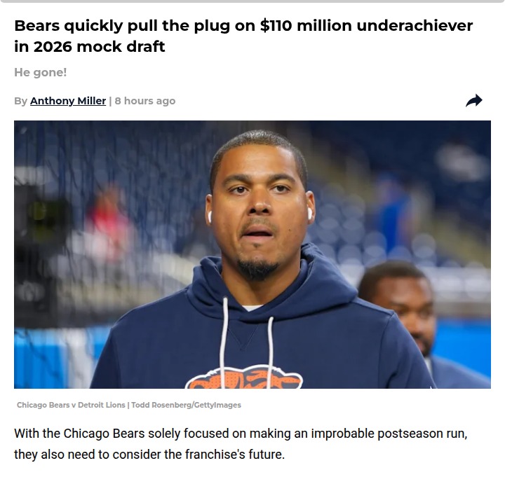 Michael Pitts+FollowChicago Bears shake up future with bold draft movesThe Bears are making big changes that could reshape the team for years. With DJ Moore’s $110 million contract not living up to expectations, Chicago is eyeing younger, cheaper talent in the 2026 NFL Draft. They’re targeting Cashius Howell to boost a struggling pass rush, and Elijah Sarratt could step in as a reliable receiver for Caleb Williams—possibly replacing Moore. Add in Lee Hunter to strengthen the defensive line, and it’s clear the Bears are betting on youth and potential over pricey veterans. How do you feel about the Bears’ new direction? Would you move on from Moore? #Sports #Football #ChicagoBears00Share