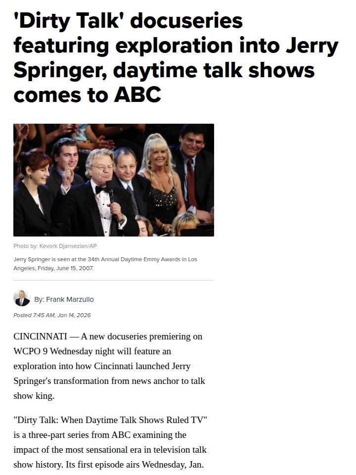 Ryan Massey+FollowHow Cincinnati made daytime TV wildCincinnati was the launchpad for Jerry Springer's wild ride from local news anchor to the king of outrageous daytime talk shows. The new docuseries "Dirty Talk" dives into how the Queen City shaped the show’s early, surprisingly serious days—before it exploded into the chaos that defined '90s TV. Springer’s first episodes, filmed at Crosley Square, featured thoughtful interviews with big names, but everything changed when he moved to Chicago. This series brings out never-heard stories from insiders and shows just how much Cincinnati influenced TV history. What do you remember most about the Springer era? #Entertainment #TVSeries #Cincinnati00Share