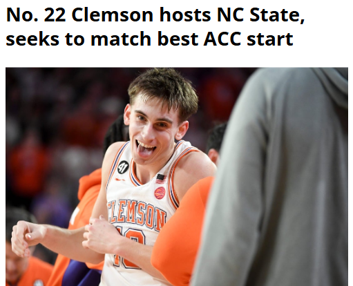 GalacticGiraffe+FollowClemson hoops: Can the Tigers keep rolling?Clemson basketball is on fire—undefeated in ACC play and fresh off snapping Miami’s 10-game win streak. ESPN’s latest prediction gives the Tigers a strong 67.5% chance to take down NC State at home, thanks to their top-25 national ranking and a defense that’s among the best in the country. NC State, meanwhile, is coming off a tough loss and looking to play spoiler. With Clemson’s momentum and ESPN projecting a 24-7 finish, do you think the Tigers are legit ACC title contenders this year? Let’s hear your thoughts on what’s fueling this run! #Sports #ClemsonTigers #CollegeBasketball00Share
