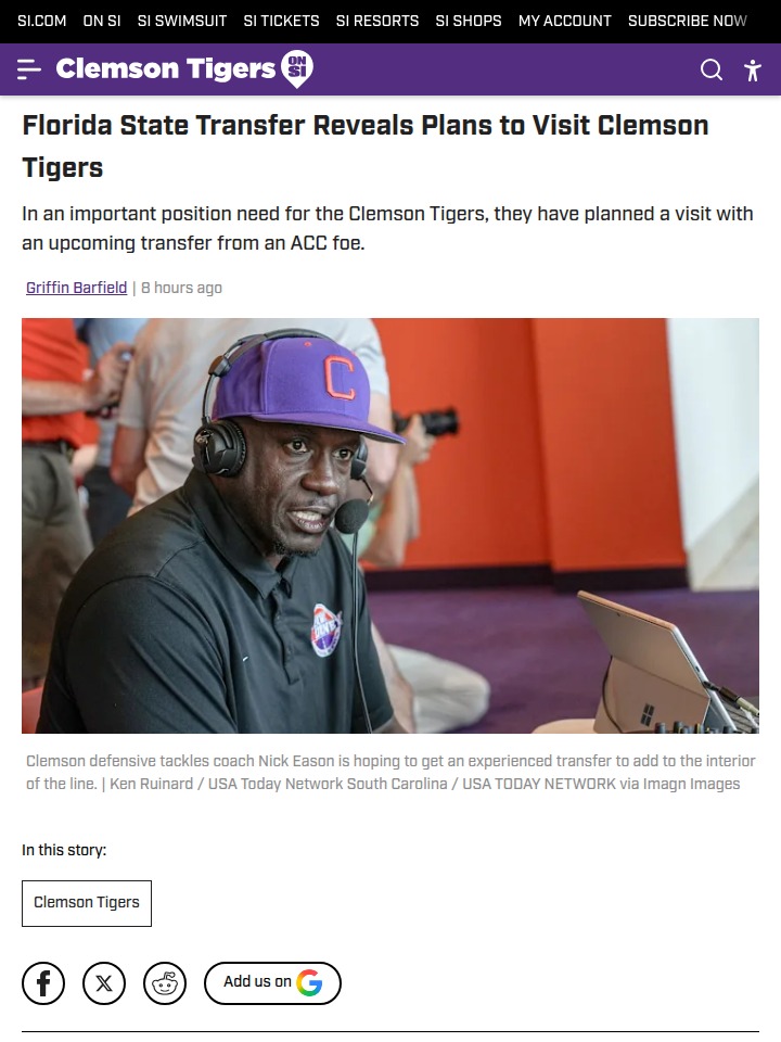 Chad Williams+FollowTransfer Portal Buzz: Jenkins Eyes ClemsonBig news for the Tigers’ D-line! Florida State’s Jayson Jenkins, a 6’6” veteran, is set to visit Death Valley after entering the transfer portal. With the Tigers losing key linemen to the NFL and portal, Coach Dabo could really use Jenkins’ experience in the trenches. If Jenkins commits, he’ll bring much-needed leadership to a young group led by Amare Adams and Vic Burley. Could this be the piece Clemson needs to stay dominant in the ACC? #Sports #Football #ClemsonTigers00Share