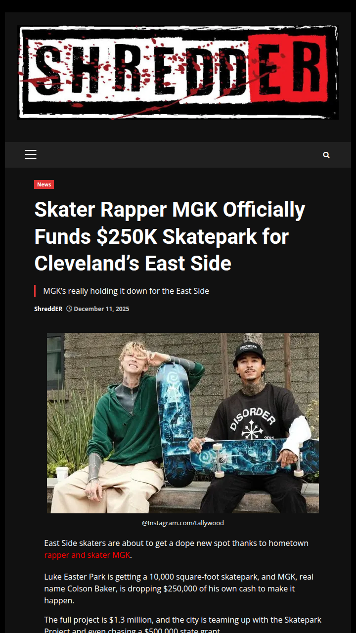 xpotter+FollowMGK brings a new skatepark to Cleveland’s East SideCleveland’s East Side is getting a major upgrade: MGK is putting $250K of his own money into a brand new 10,000-square-foot skatepark at Luke Easter Park. This is a big deal for local skaters, who’ve had to trek downtown to Crooked River for a decent spot. With the city, the Skatepark Project, and a possible state grant all chipping in, this project is moving fast. The park is set to open in August 2027, right next to Zelma George Rec Center. Imagine the events and community vibes this could bring—how do you think this will change the East Side scene? #Entertainment #Celebrity #Cleveland10Share