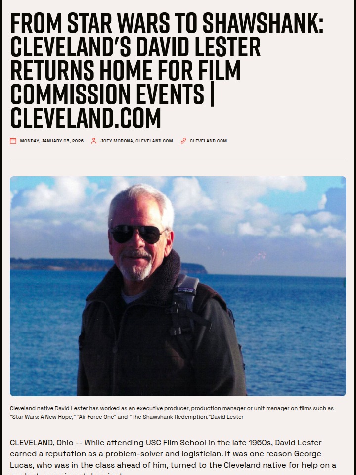 Greg Cardenas+FollowHollywood legend returns to ClevelandCleveland’s own David Lester, the behind-the-scenes mastermind on classics like Star Wars and The Shawshank Redemption, is back in town this weekend to share stories and advice with local film lovers. From shooting the Millennium Falcon’s escape to hiring Ohio talent for Hollywood blockbusters, Lester’s journey shows how anyone—armed with curiosity and grit—can break into the industry. With filmmaking tools now in everyone’s pocket, could Cleveland become the next big movie hub? Let’s talk about how local talent and creativity can shape the future of film right here at home. #Entertainment #Movies #Cleveland00Share