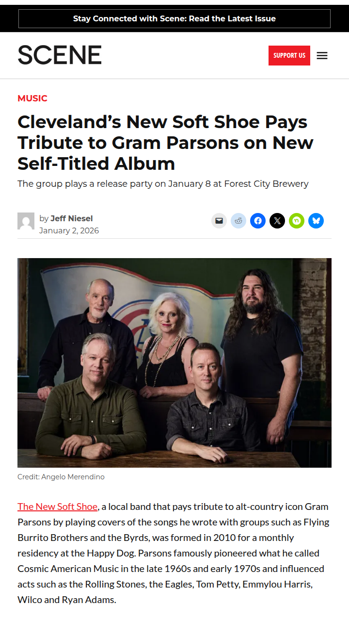 Suzanne Glover+FollowCleveland band reimagines Gram Parsons classicsCleveland’s own New Soft Shoe is breathing new life into Gram Parsons’s legendary songs with their debut album—recorded live and packed with creative twists on classics like “Hickory Wind” and “Sin City.” For 15 years, their monthly shows have become a local tradition, bringing neighbors together for a truly communal music experience. Now, with a record release at Forest City Brewery, fans can finally take home these unique renditions on colored vinyl or CD. It’s more than just a tribute—it’s a celebration of Cleveland’s vibrant music scene and the power of gathering for something real. Who’s been to their shows? What’s your favorite Gram Parsons tune? #Entertainment #Music #ClevelandMusic00Share