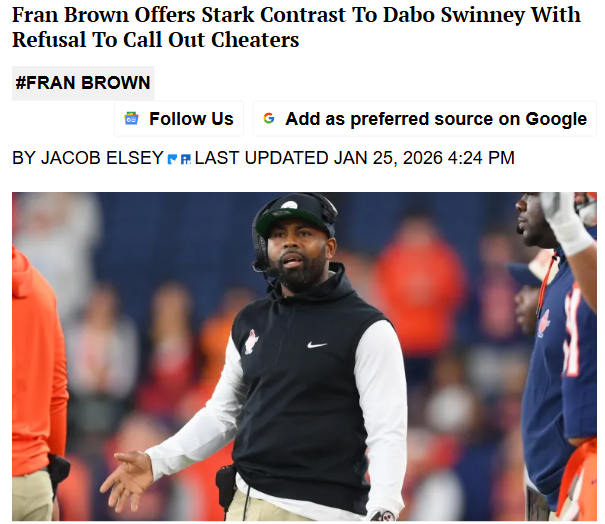 Michael Pitts+FollowFran Brown vs Dabo: Tampering Drama Heats UpWild times in the ACC! Fran Brown just showed he’s not about to play Dabo Swinney’s name-and-shame game when it comes to tampering. While Dabo called out Ole Miss directly for poaching Luke Ferrelli, Brown kept things anonymous and sided with players like Mensah chasing bigger NIL deals. Is Brown’s ‘it’s just business’ approach the new normal, or should coaches be calling out cheaters? Let’s hear your take! #Sports #Football #CollegeFootball10Share