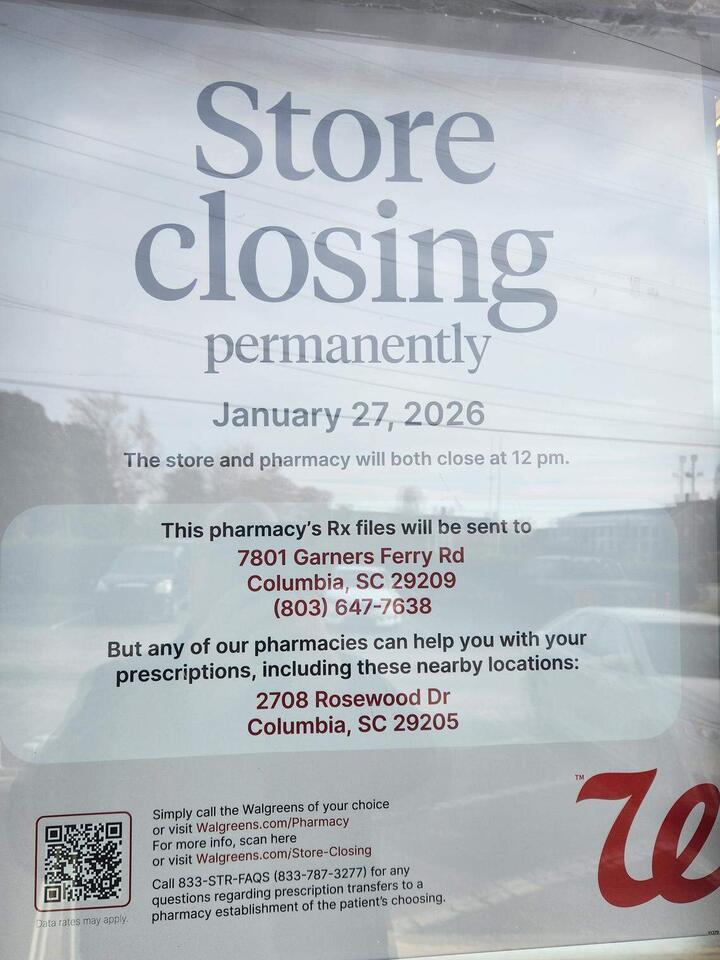 Jasmine Rush+FollowWalgreens closing hits Garners Ferry neighborsLosing the Walgreens at 6500 Garners Ferry Road will be a big shift for folks who rely on that spot for quick pharmacy runs and everyday essentials. With its doors closing for good at noon on January 27, 2026, regulars will need to head three miles down the road to the next Walgreens for prescriptions. This closure lands right in the heart of a busy shopping area, across from the Dorn VA Medical Center and surrounded by popular stores. How do you think this will affect your daily routine or the neighborhood vibe? #Business #LocalBusiness #ColumbiaSC00Share