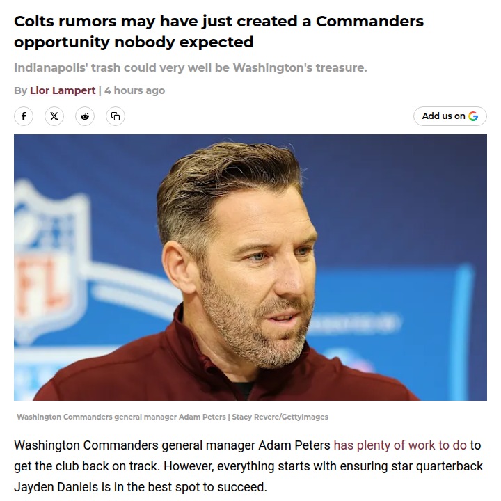 Amy Williams+FollowPittman Jr. to Commanders? Indy Rumors Heat UpColts fans, have you seen the latest buzz? With Michael Pittman Jr.'s future in Indy looking shaky due to his massive cap hit, the Commanders might be ready to pounce if he becomes a free agent. Pairing Pittman with Jayden Daniels could finally give the Commanders the offensive firepower they've been missing. Could this be the surprise move that turns Washington around? The ball’s in Indy’s court now! #Sports #Football #Commanders21Share