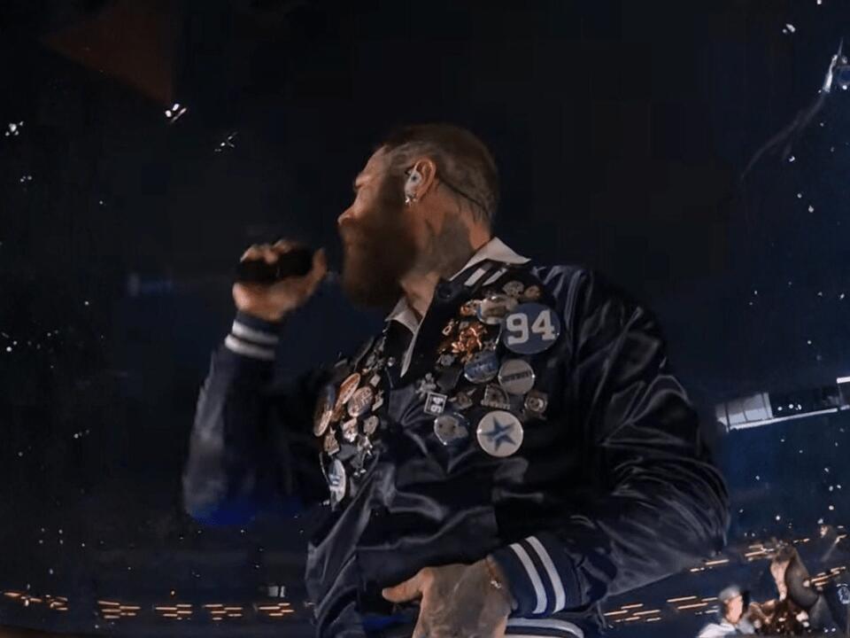 april67+FollowPost Malone’s emotional Cowboys tribute wins heartsPost Malone’s Thanksgiving halftime show at AT&T Stadium wasn’t just about the music—it was a powerful moment of remembrance for Cowboys fans. Wearing a blue and white jacket with a bold “94” pin, he honored Marshawn Kneeland, a fallen Cowboys player, right at midfield. The Texas native’s heartfelt words, “We love you, 94,” struck a chord with the crowd and viewers everywhere. Fans are calling it one of the most genuine tributes ever seen on a Cowboys Thanksgiving stage. It’s moments like these that remind us how sports and music can bring a community together. What did you think of Posty’s tribute? #Entertainment #PostMalone #Cowboys110Share
