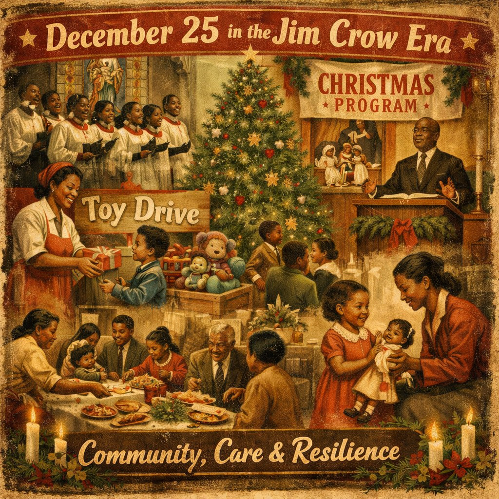 December 25 during the Jim Crow era was not a season of shared celebration for everyone. In segregated cities across the South and beyond, public Christmas traditions such as downtown displays, department store Santas, toy drives, and holiday parades were largely reserved for white communities. Black children were excluded or redirected to inferior, separate events. What appeared festive on the surface reinforced a deeper message about who was allowed public joy. Black communities did not accept this quietly. Instead, they built their own celebrations with intention and care. Churches became the center of Christmas life. Pastors, church mothers, youth leaders, fraternal orders, and civic groups organized toy drives, food distributions, and holiday meals to ensure families were fed, children were remembered, and no one was overlooked. These efforts were not symbolic. They were structured, organized, and rooted in faith and responsibility. Christmas programs filled sanctuaries with music, pageants, and warmth, creating spaces where dignity replaced exclusion. Black newspapers documented these moments, highlighting pride, organization, and self-reliance rather than grievance. December 25 in the Jim Crow era reveals an overlooked truth. Exclusion did not eliminate celebration. It transformed it. When public spaces closed their doors, Black communities opened their own. Through faith, organization, and collective care, they protected tradition, affirmed belonging, and sustained joy in a society designed to deny it. #December25 #JimCrowEra #BlackHistory #HolidayHistory #ChurchCommunity #CommunityCare #FaithAndTradition #AmericanHistory