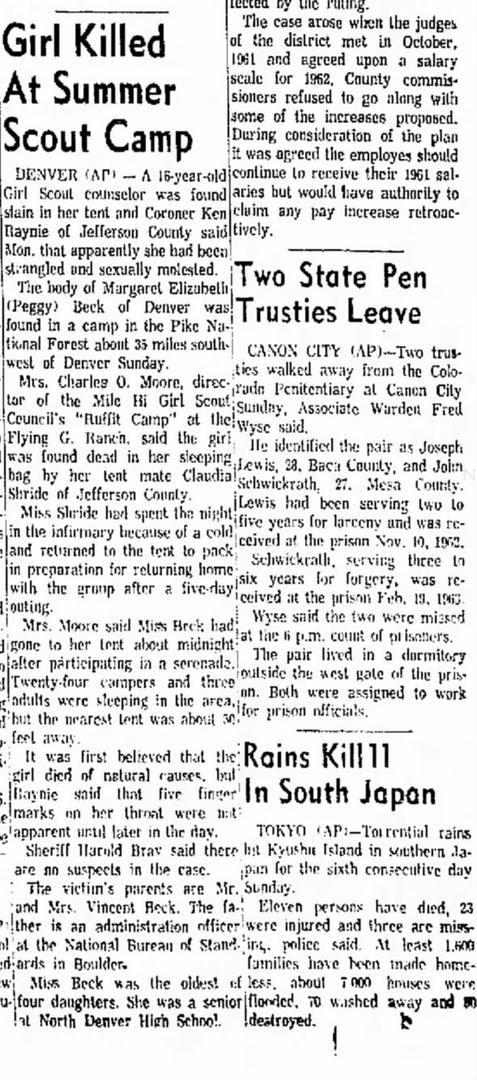 The Sassy Gazette+Follow🕯️ Cold Case Deep Dive: Margaret “Peggy” Beck (1963) Margaret “Peggy” Beck was 16 years old and about to start her senior year of high school when she was killed at Girl Scout camp in Colorado in 1963. For decades, her case sat in silence. Then DNA and investigative genetic genealogy identified James Raymond Taylor as the suspect. But Taylor was never caught and vanished years ago, leaving this case “solved” without real accountability. 🔦 Full casefile here: https://thesassygazette.blogspot.com/2026/01/the-ghost-of-james-raymond-taylor.html If the link does not open directly in the NewsBreak app, you may need to copy and paste it into your browser. #TrueCrime #ColdCase #Colorado #PeggyBeck #JamesRaymondTaylor #DNASolves #JusticeForPeggy #TheSassyGazette #DickingAroundWithRichie10Share