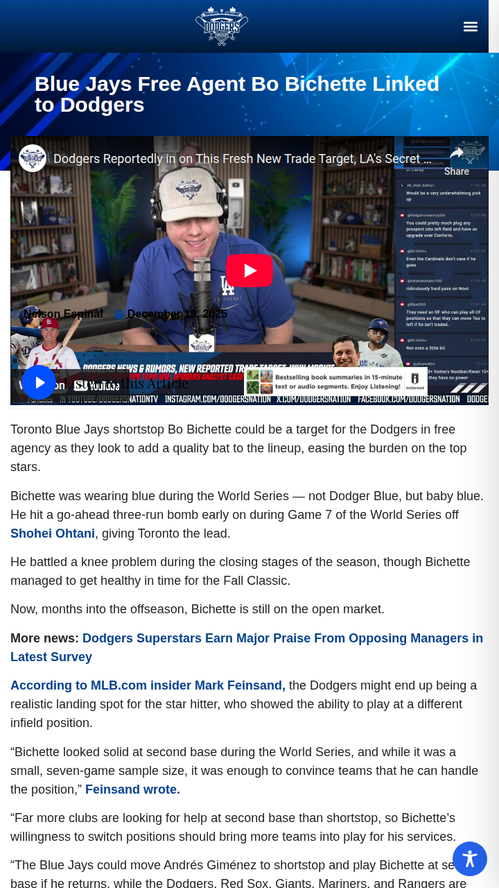 Catherine Reeves+FollowBo Bichette to LA? Dodgers Eye Blue Jays StarRumors are heating up about Bo Bichette possibly swapping his Blue Jays baby blue for Dodger Blue this offseason. After his clutch World Series homer off Ohtani and showing he can handle second base, Bichette’s flexibility is catching LA’s eye. The Dodgers’ aging infield could use his bat, but will Bo settle for a short-term deal? Would love to see him in the lineup with Mookie and Freeman! What do you think—good fit or just offseason smoke? #Sports #Baseball #Dodgers10Share