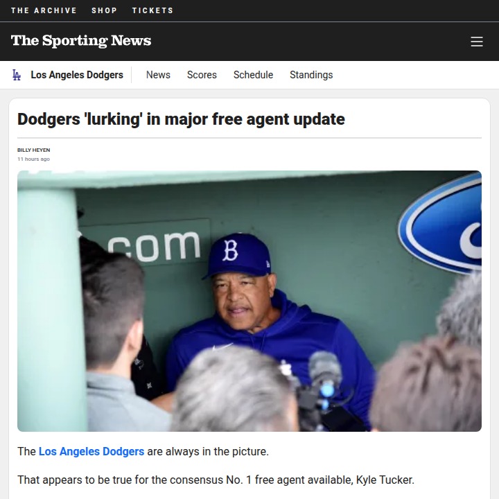 Maria Chavez+FollowDodgers Still in the Mix for Kyle Tucker?Looks like the Boys in Blue aren’t out of the Kyle Tucker sweepstakes just yet. While the Blue Jays might be leading the charge, the Dodgers are quietly lurking and could swoop in if things shift. Adding a bat like Tucker’s to an already stacked lineup would make the champs even scarier as they chase a three-peat. Never count out L.A. when it comes to landing big names! #Sports #Baseball #Dodgers00Share