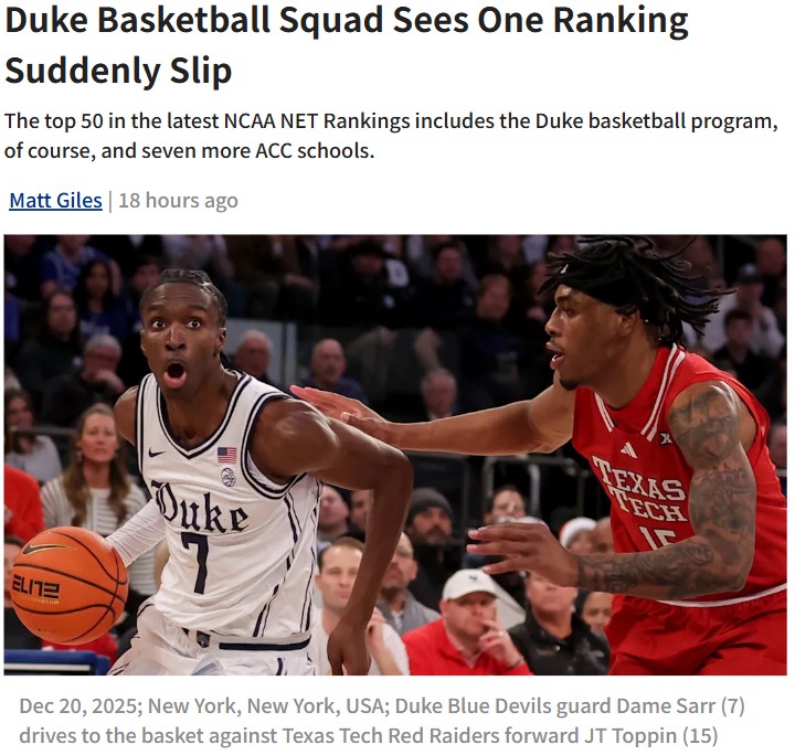 GalacticGiraffe+FollowBlue Devils Stumble, Rankings Shake UpTough night for the Blue Devils as they took their first L of the season against the Red Raiders at MSG, dropping them to No. 4 in the NCAA NET Rankings. Coach Scheyer’s squad is still strong in Quad 1 games, but this close loss stirs up the rivalry talk and shakes up the top five. Can Duke bounce back and reclaim their spot? Let’s hear your takes, Devil faithful! #Sports #DukeBasketball #BlueDevils00Share