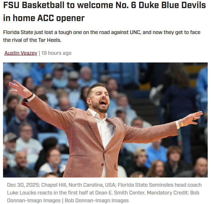 Theresa Boyd+FollowDuke vs FSU: Can Boozer Stay Hot in Tallahassee?Blue Devil fans, after a shaky defensive effort against Georgia Tech, all eyes are on Cameron Boozer as Duke heads to Tallahassee to face the Seminoles. Boozer’s ACC debut was pure dominance—26 points, 12 boards—but Duke’s D needs to tighten up. FSU’s been cold from deep, but they’re hungry for a statement win. Can Coach Scheyer’s squad keep their streak alive, or will the Noles catch them napping? #Sports #Basketball #DukeVsFSU00Share