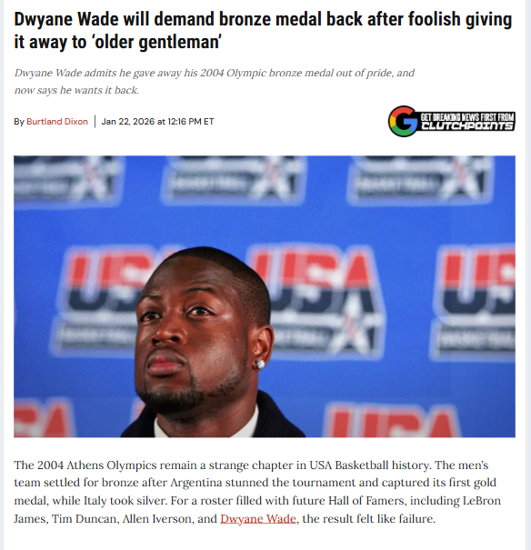 James Hall+FollowDwyane Wade’s Bronze Medal Regret 🥉Dwyane Wade just admitted on his podcast that he gave away his 2004 Olympic bronze medal to an ‘older gentleman’ because he didn’t value it at the time. Now, he wants it back! Fans are split—some say it’s a lesson in humility, others think it’s too late to ask for it. Did ego get the best of him, or is this just personal growth on display? #Entertainment #Celebrity #DwyaneWade10Share
