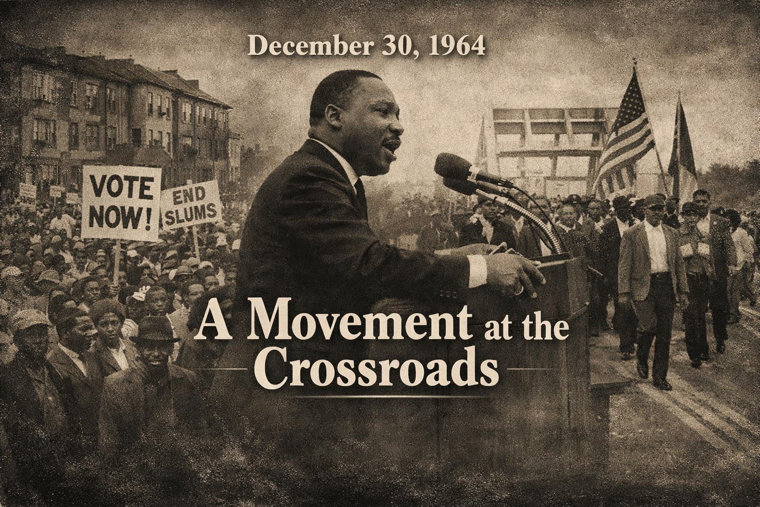 December 30, 1964 marked a moment of transition for the modern civil rights movement. In late December, Martin Luther King Jr. delivered one of his final major public addresses of the year as the movement stood between legislative victory and unresolved reality. The Civil Rights Act had been signed months earlier, yet resistance to enforcement remained widespread, underscoring that legal change had not automatically produced social or economic equality. King used his end of year speeches to signal where the struggle was headed next. While segregation laws had been formally dismantled, economic inequality, barriers to voting access, and entrenched segregation in Northern cities were becoming increasingly visible. He warned that discrimination was no longer confined to the South or expressed solely through explicit statutes, but embedded in housing patterns, employment practices, education systems, and political participation nationwide. By December 1964, King was placing greater emphasis on the connection between racial justice and economic justice. He spoke openly about poverty, unemployment, and the limits of symbolic progress when millions remained excluded from opportunity. Voting rights, still obstructed through intimidation and administrative barriers, emerged as a central priority, setting the stage for the campaigns that would define 1965. This period marked a shift in tone and strategy. The movement was moving beyond confronting visible segregation toward challenging structural inequality, a transition that would intensify public debate and resistance. King’s late December address reflected a movement no longer focused solely on passing laws, but on transforming the deeper conditions shaping American life. #History #USHistory #CivilRightsMovement #MartinLutherKingJr #VotingRights #EconomicJustice #AmericanHistory #SocialChange