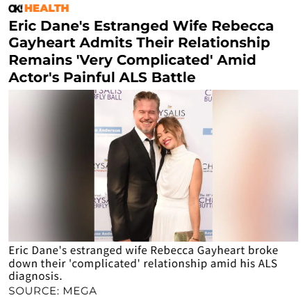 Joseph Bradley+FollowEric Dane’s Ex Steps Up Amid ALS BattleEric Dane (aka McSteamy from Grey’s Anatomy) is fighting ALS, and his estranged wife Rebecca Gayheart is still by his side—literally. Even after their split, she’s jumping in to help with his care when the nurses can’t make it. She says their love is now “familial,” and she’s showing their daughters what real support looks like. Major feels for this blended family’s strength and the reminder to cherish every moment together. #Health #BodyHealth #EricDane60Share