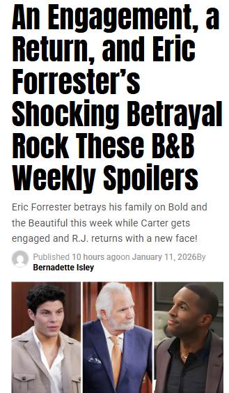 Charles Brown+FollowEric Forrester Betrays Ridge?! 😱Eric Forrester just joined Katie Logan’s rival fashion house after Ridge forced him into retirement! Ridge is about to lose it, and honestly, it’s the drama we’ve been waiting for. Plus, Carter finally gets engaged to Daphne, and R.J. returns with a new face. But the real question: Is Eric’s move pure revenge, or is there more to this betrayal? Team Ridge or Team Eric? #Entertainment #BoldandBeautiful #EricForrester00Share