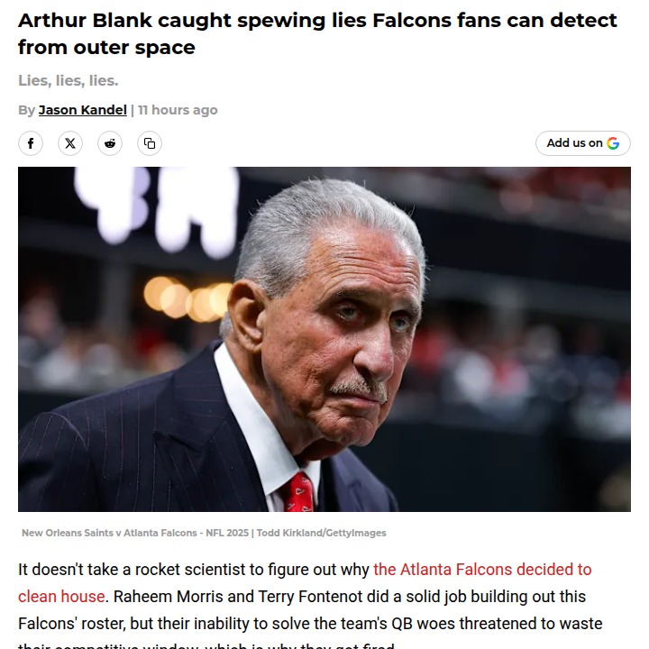 Christopher Hughes+FollowFalcons fans see through Blank’s QB denialArthur Blank’s latest comments about the Falcons’ quarterback mess aren’t fooling anyone in Atlanta. Despite the owner’s claims, it’s clear the team’s revolving door at QB—after signing Kirk Cousins to a massive deal and drafting Michael Penix Jr. in the top 10—cost the previous regime their jobs. Fans remember the awkward front office moments and the struggles on the field, especially after Penix’s injury. The truth? Atlanta’s been a quarterback away from real contention since Matt Ryan left. What’s your take—should Blank own up to the missteps, or is this just business as usual in the NFL? #Sports #Football #Falcons20Share