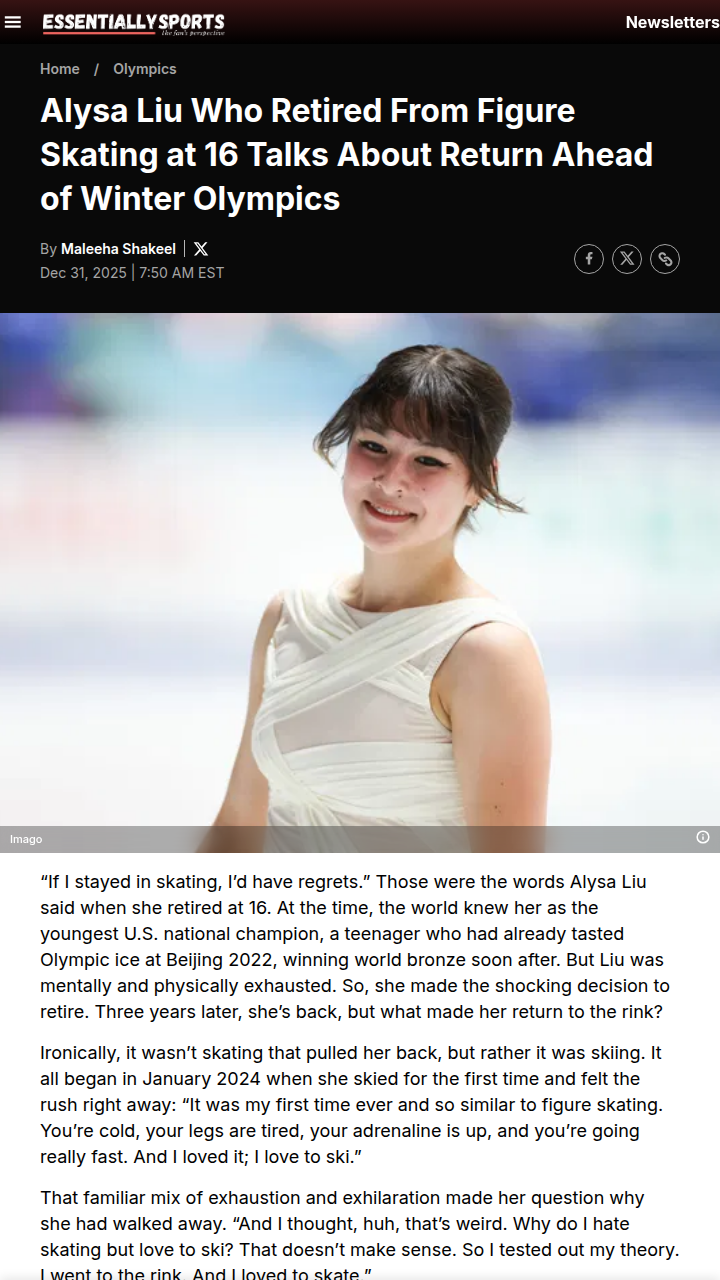 Aaron Gentry+FollowAlysa Liu’s Comeback: From Teen Phenom to World ChampSkating fans, did you ever think Ice Queen Alysa Liu would pull off the ultimate comeback? After shocking everyone by retiring at 16, Liu returned to the rink in 2024, facing a changed body and fierce competition. Even Brian Boitano called it “the biggest comeback in sports history.” Now, with new artistry and independence, Liu’s not just landing jumps—she’s a gold medal favorite for Milan. Thoughts on her transformation? #Sports #AlysaLiu #FigureSkating00Share