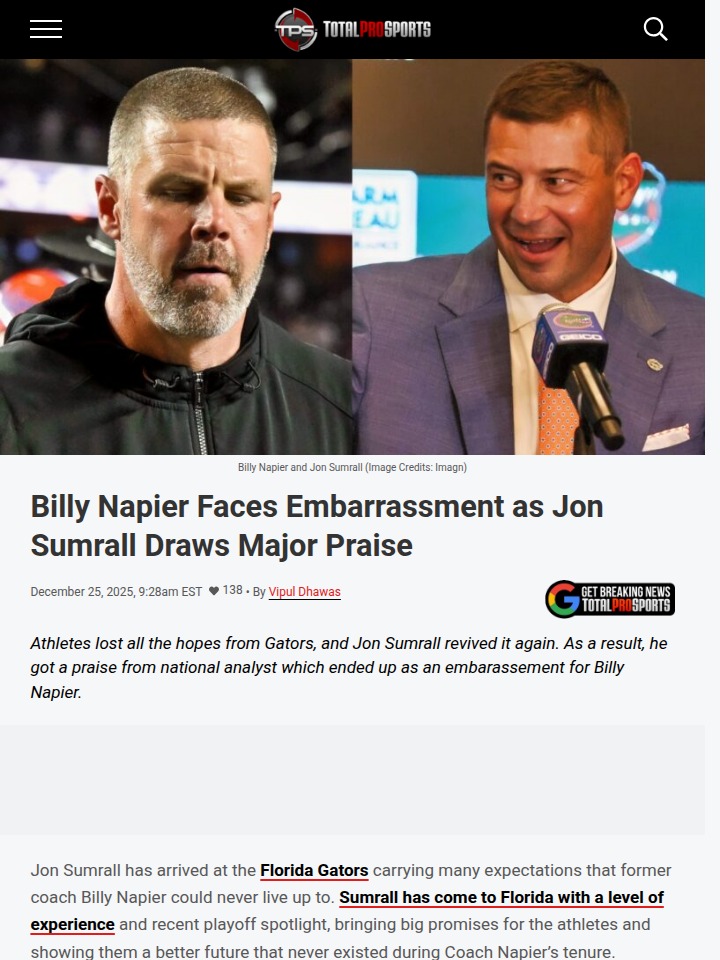 Amy Williams+FollowFlorida Gators’ coaching shakeup sparks hopeJon Sumrall’s arrival at Florida has completely changed the vibe around the Gators. After years of frustration under Billy Napier, players and fans are finally seeing a coaching staff that’s getting real praise from national analysts. Brandon Olsen didn’t hold back, saying Sumrall’s staff is a huge upgrade and could help players like Will Griffin reach their full potential—something that never happened before. With DJ Lagway’s transfer now looking questionable, the pressure is on. Do you think Sumrall’s confidence and fresh approach will finally turn things around for Florida? Let’s hear your thoughts! #Sports #Football #FloridaGators00Share