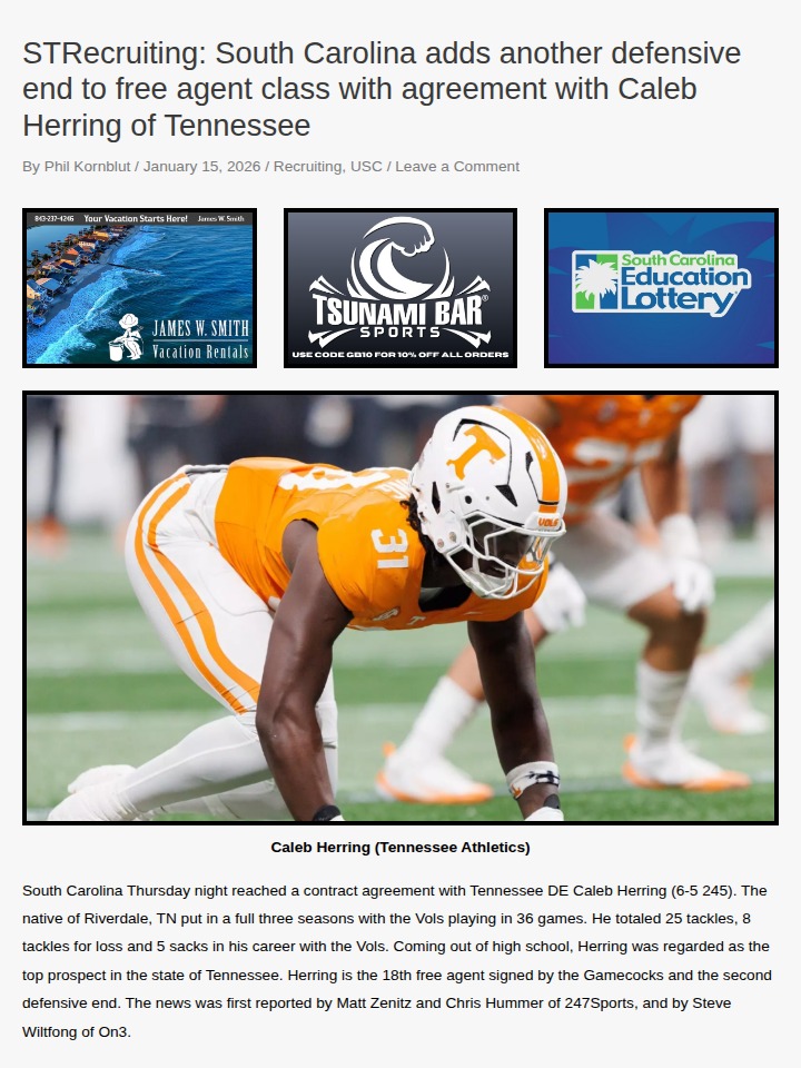 Michael Pitts+FollowGamecocks land top Tennessee edge rusherSouth Carolina just made a major move by signing Caleb Herring, Tennessee’s former No. 1 high school prospect and a proven SEC edge rusher. Herring’s speed and ability to disrupt plays could give the Gamecocks’ defense a real boost this season. With three years of SEC experience and a knack for making big stops, he’s expected to shake up the defensive line. What do you think—will Herring’s arrival help South Carolina take a step forward, or is there still more work to do on defense? Let’s hear your thoughts! #Sports #Football #Gamecocks10Share