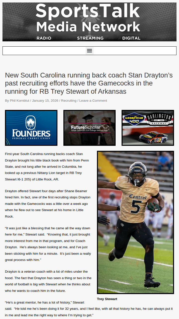 Christopher Hughes+FollowGamecocks make bold move for Arkansas RBSouth Carolina’s new running backs coach, Stan Drayton, wasted no time making an impression—he hopped on a plane to Little Rock just days after being hired, all to visit top RB prospect Trey Stewart. Stewart, who racked up 13 touchdowns last season, says Drayton’s personal touch and deep coaching experience have put the Gamecocks firmly in the mix alongside big names like Arkansas, Penn State, and Oklahoma. Stewart’s decision this spring could shake up the SEC landscape. What do you think—does Drayton’s hands-on approach give South Carolina the edge? #Sports #Football #Gamecocks00Share