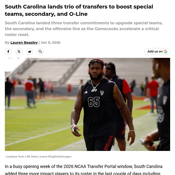 glen25+FollowGamecocks shake up roster with key transfersSouth Carolina just made a bold move to revamp its football team, bringing in three standout transfers to address some of last season’s biggest weaknesses. Veteran kicker Upton Bellenfant promises more confidence in close games, while Quay’sheed Scott adds grit and depth to the secondary. The real headline, though, is Jacarrius Peak—a top-ranked offensive tackle who could be a game-changer for the O-line. After a tough 4-8 season, these additions signal a serious push to compete in the SEC. How do you feel about this aggressive transfer strategy? Will it be enough to turn things around? #Sports #Football #Gamecocks00Share