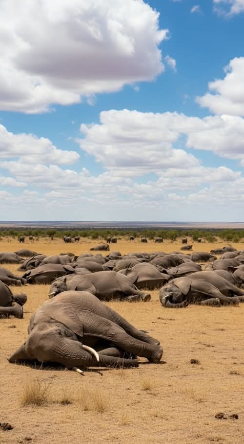 Kristy Tallman+FollowWEATHER WARFARE: ELEPHANTS FALL FIRST 🐘⚠️ Under skies once ruled by thunderous trumpets, silence has taken over. More than 200 elephants have died as extreme drought rips through their lands — rivers erased, soil cracked, survival stolen. This isn’t just climate change. This is animal weather warfare — where intensified droughts and manipulated atmospheric patterns hit wildlife before humans feel the full impact. Elephants are ecosystem engineers. When they fall, the system is already failing. And yet, resistance remains. Rangers and communities are fighting to protect the herds that survive — holding the line as the planet is pushed beyond its limits. They are not collateral. They are the warning. #Geoengineering #WeatherWarfare #ElephantCrisis #AnimalImpact #GlobalWatch5252Share