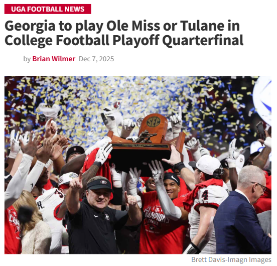 glen25+FollowBulldogs Eye Sugar Bowl ShowdownDawg Nation, get ready! Georgia’s headed to the Sugar Bowl as the SEC champs after rolling over Bama. Now, the Bulldogs will face either the Rebels or the Green Wave in the CFP Quarterfinal. The big question: can Kirby’s crew keep their title hopes alive in New Orleans? Who do you want to see the Dawgs face—Lane Kiffin’s Ole Miss or the upstart Tulane squad? Let’s talk matchups and playoff dreams! #Sports #Football #GoDawgs00Share